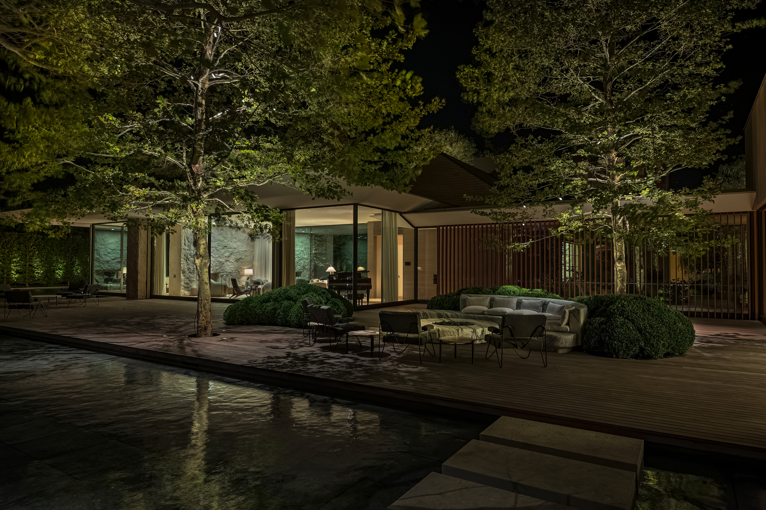 From concept to the specification of high quality fixtures, and the full landscape lighting plan, LANDLUX creates customized outdoor lighting solutions that incorporate the desired vision and feel for each setting, the selection of visually compelling focal points, and path, landscape, and waterside lighting.